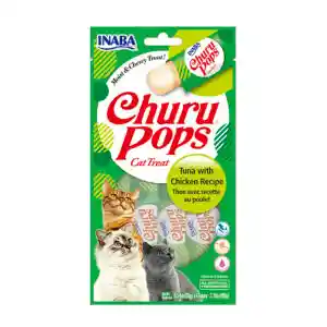 Churu Pops de atún con pollo Snack húmedo elaborado con ingredientes de grado humano. Libre de granos, colorantes y preservantes artificiales. Fortalecido con Vitamina E y té verde.