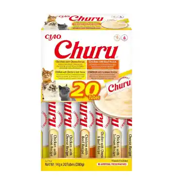 Recetas de atún con pollo, atún con vieira, atún con salmón y atún. * Proteína 8.5% Contenido de grasa 0,5% Fibras brutas 0,1% Ceniza bruta 1,5% Contenido de agua 88,0% Contenido calórico 6,0 kcal/tubo Alimenta como un regalo a tu gato. Refrigérelo después de abrirlo y sírvalo lo antes posible. Proporcione agua limpia y fresca diariamente. Vitamin E 310IU. Purés Churu, Divertidos snacks diseñados para darles de comer directamente desde el empaque a los gatos y fortalecer los lazos entre ellos y sus dueños. Incluye las recetas de atún con pollo, atún con vieira, atún con salmón y atún. Antes de introducir cualquier nueva golosina o suplemento en la dieta de tu gato, especialmente en el caso de gatitos jóvenes, es recomendable consultar al veterinario para asegurarte de que sea seguro y adecuado para su salud. Tipo de mascota: Gato Edad: Gatos de 8 semanas a 6 meses de edad Tamaño de raza: Todos los tamaños Especialidad: Nutrición