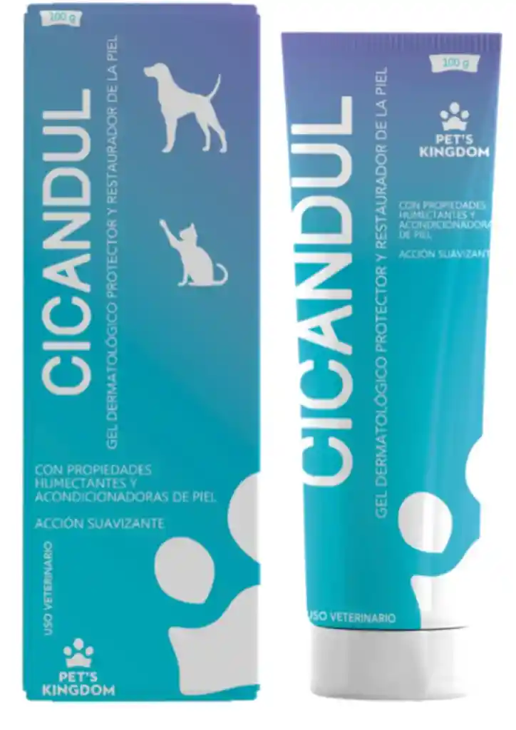 Cicandul Gel Dermatologico Protector y Restaurador De La Piel. Es una asociación de clorhexidina, aloe vera, aceite de caléndula y aceite de eucalipto que brinda un efecto emoliente y suavizante de piel y sus anexos, incluidos los agrietamientos de glándula mamaria y pezones, los pulpejos en perros y gatos. Modo de uso: Aplicar una cantidad moderada sobre la piel a tratar y masajear la zona de irritaciones o agrietamientos en la piel, dejar actuar y no remover. En perros y gatos evitar el lamido, emplear collar isabelino. Para almohadillas, plantares de perros y gatos, aplicar luego de caminatas o ejercicios. Realizar previo lavado con agua Se sugiere aplicar suave diariamente en las noches, protegiendo con zapato adecuado las almohadillas hasta el otro día para permitir mayor acción del producto. Para glándulas mamarias aplicar el producto y masajear. El producto se debe aplicar diariamente hasta resolución del problema o permanentemente como protector. Repetir de 2-3 veces al día o según criterio del Médico Veterinario. Especies: Caninos y felinos.