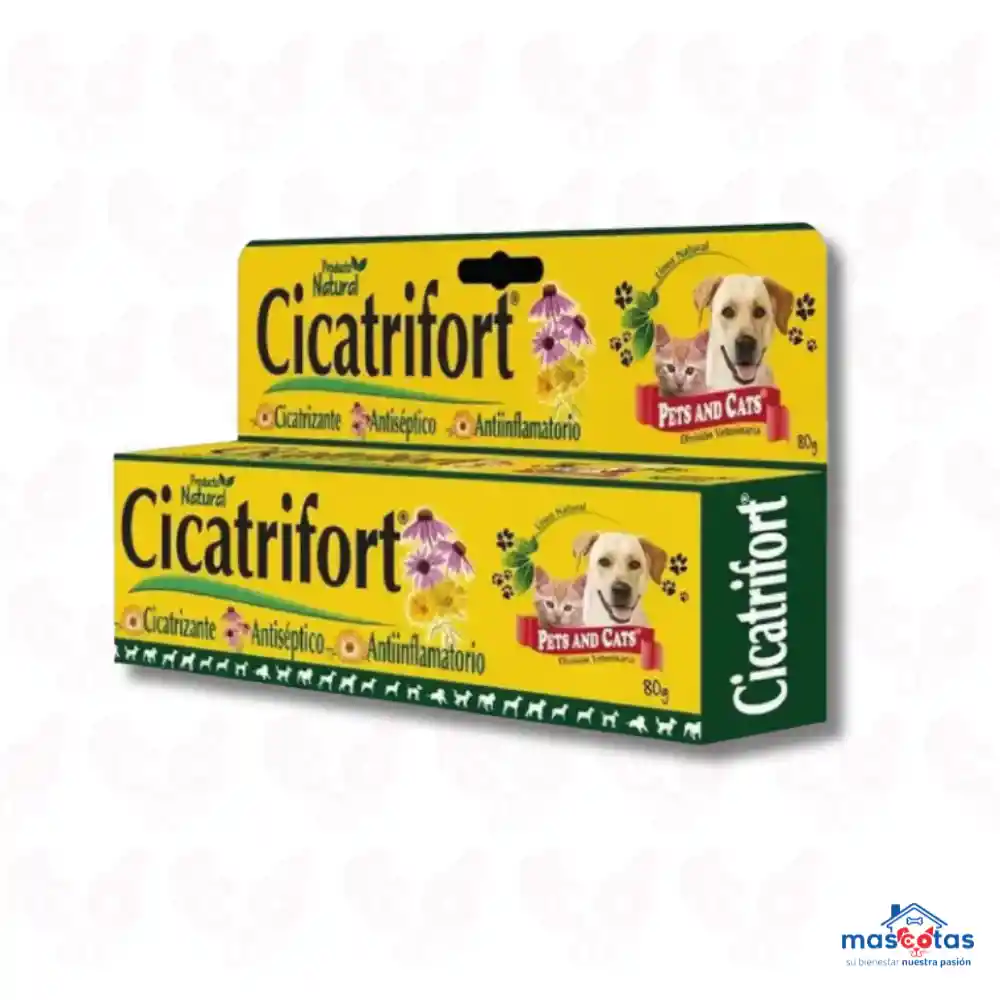 Cicatrifort es un gel tópico para uso externo en perros y gatos, formulado con extractos naturales de caléndula y equinácea, que actúa como cicatrizante, regenerador, antiinflamatorio y antiséptico. Es ideal para el tratamiento de diversas afecciones de la piel como heridas, quemaduras, mordeduras, laceraciones, úlceras y áreas post-quirúrgicas, y ayuda a estimular la regeneración de la piel y el folículo piloso. Características principales: Uso: Gel para uso externo en perros y gatos. Ingredientes principales: Extracto de caléndula y echinácea. Acción: Cicatrizante, antiinflamatoria, antiséptica y regeneradora. Beneficios: Acelera la curación de heridas. Ayuda a la regeneración de la piel y el folículo piloso. Reduce la inflamación y el dolor en la zona afectada. Previene infecciones. Es seguro si la mascota se lame, ya que no es tóxico. Indicaciones: Tratamiento de heridas, quemaduras, mordeduras, úlceras, laceraciones, dermatitis alérgica, y como coadyuvante en procesos postoperatorios. Presentación: Tubo colapsible. Modo de aplicación: Se distribuye uniformemente el gel sobre la zona afectada, usualmente 4 veces al día. En caso de heridas sucias, se recomienda lavar la zona con abundante agua, secarla y luego aplicar el gel hasta la completa cicatrización.