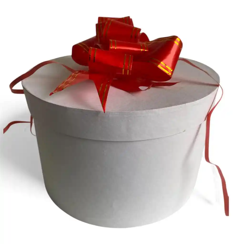 CILINDRO EN CARTÓN PIEDRA 22 CMS DE DIAMETRO Y 15 CMS DE ALTURA IDEAL PARA FLORES, REGALOS, DETALLES EN GENERAL NO INCLUYE MOÑO