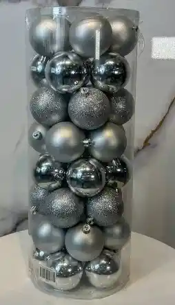 Cilindro De Bolas Navideñas X 50 Unidades Colores Disponibles Dorado Plateado Rojo Se Envia Segun Disponibilidad De Colores