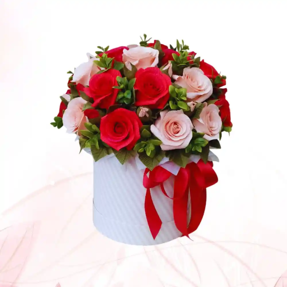 Elegante ramo de rosas frescas presentadas en cilindro, con diseño moderno y sofisticado. Ideal para cumpleaños, aniversarios o sorprender con un detalle diferente y exclusivo.