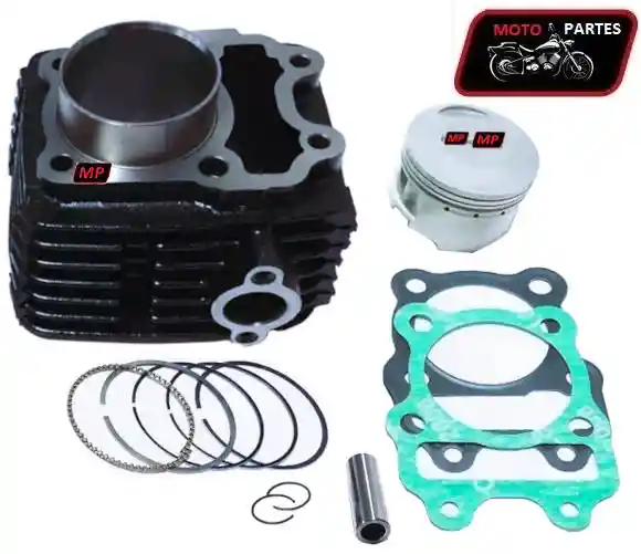 El kit completo RACING contiene: -Cilindro -Pistón -Anillos -Pasador -Pines -Kit medio de empaquetadura