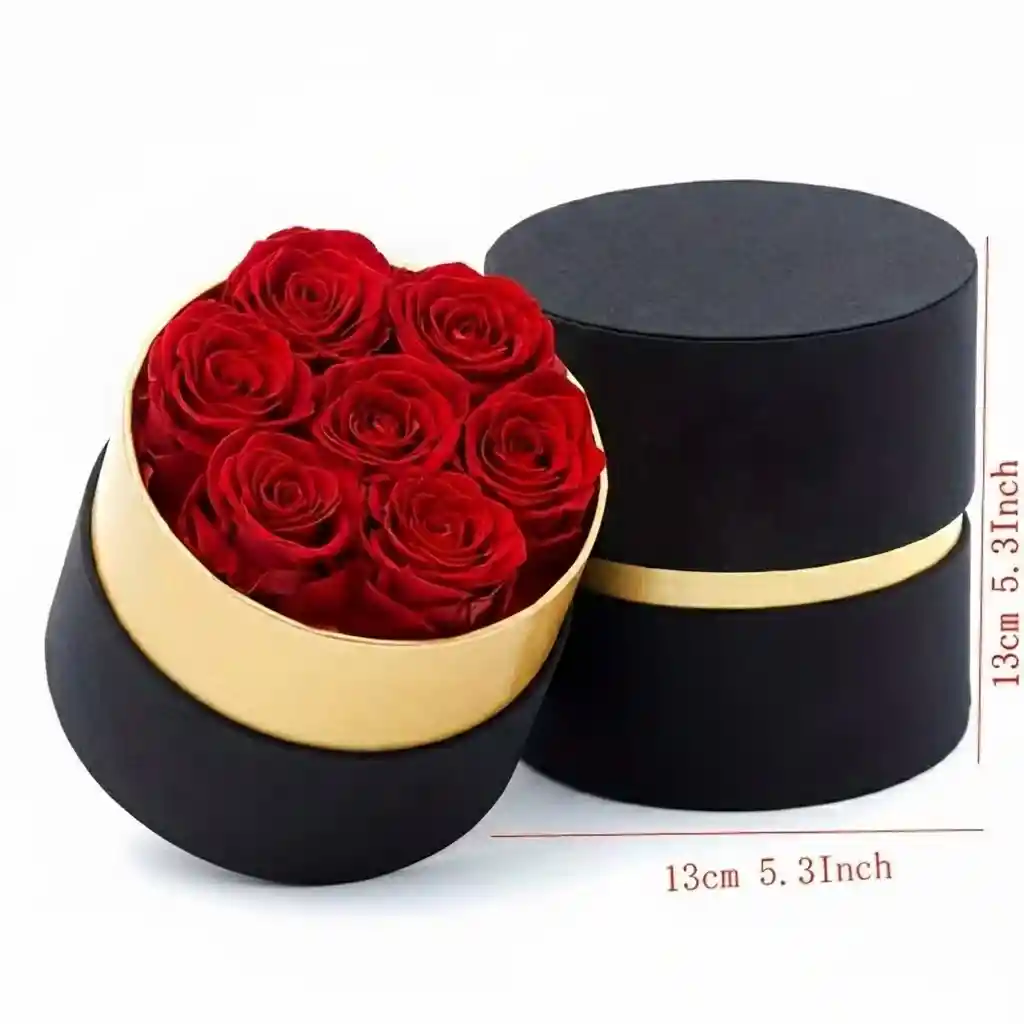 Delicadas flores eternas rosas naturales preservadas en una caja: cada caja contiene 7 piezas, y las flores de rosas inmortales se ordenan a mano en su elegante pero resistente caja de regalo negra con cinta sedosa, dándole lujo y una sensación discreta.
