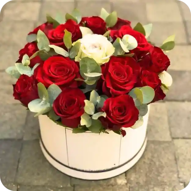 🤍🌹 Cilindro White con elegantes rosas surtidas y delicado eucalipto 🌿, una combinación fresca, sofisticada y llena de encanto. ✨ Perfecto para regalar armonía y belleza en cualquier ocasión especial.