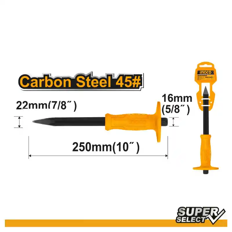 "Tienda Oficial de Repares S.A. - Todo en Ferretería CINCEL DE PUNTA HCC0841016 INGCO El cincel de punta HCC0841016 de Ingco es una herramienta versátil y de alta calidad, perfecta para profesionales en ventas y marketing. Este cincel está diseñado para ofrecer un rendimiento excepcional en trabajos de carpintería, albañilería y tallado de madera. Su punta afilada permite realizar cortes precisos y detallados en diferentes materiales. Está fabricado con materiales duraderos y resistentes, lo que garantiza su longevidad y resistencia al desgaste. Además, su mango ergonómico proporciona comodidad y control durante el uso prolongado. Con el cincel de punta HCC0841016 de Ingco, podrás obtener resultados profesionales y llevar tus proyectos al siguiente nivel. Especificaciones Técnicas: * Mango estilo INGCO * Tamaño de la cabeza 4 mm * Tamaño del mango 16 mm * Longitud 250mm * Material 45 # acero al carbono Forjado y tratamiento térmico. * Embalado por percha de plástico RECUERDA: * Somos una empresa comercializadora de productos en líneas de Ferretería Liviana, Tornillería, Repuestos de Automotor, Elementos para la Seguridad y Construcción, Herramientas Agrícolas, Manuales y Eléctricas. * La mayoría de todos nuestros productos tienen garantía. * Todos nuestros productos son nuevos, nunca encontrarás artículos usados o desgastados, todos están en perfectas condiciones y el envío lleva un proceso de empaque adecuado. * Todos nuestros productos están en constante proceso de prueba de calidad por parte de nuestros proveedores. * Contamos con una excelente reputación de distribuidores ferreteros en distintas partes del país. * Encuéntranos o Contáctanos en nuestras redes sociales y pagina web. "