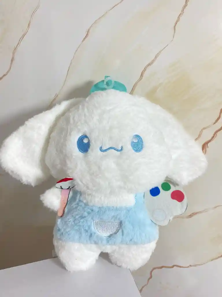 Hermoso peluche de conejita con paleta de colores a modo de simulación artística, empaque y tarjeta feliz día.
