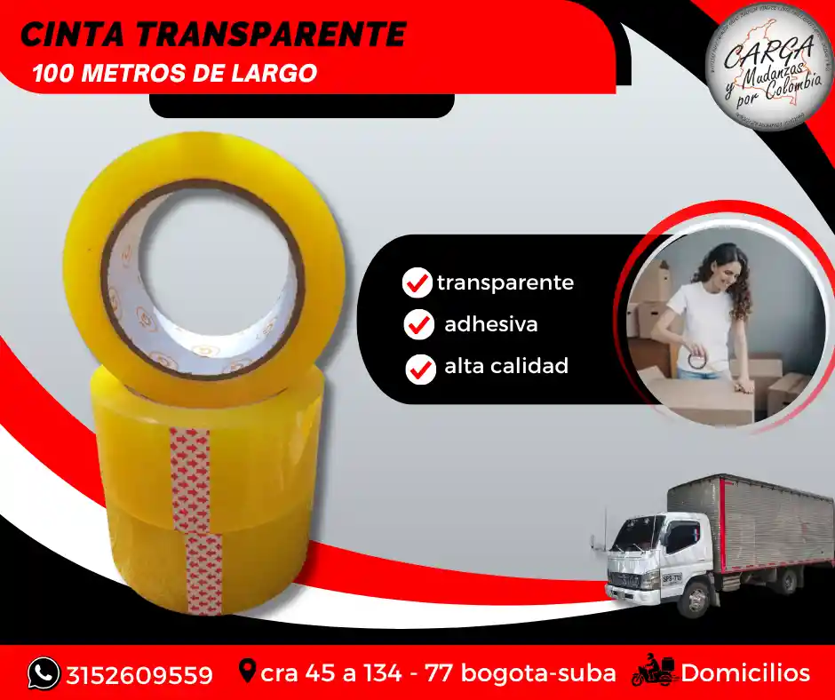 La cinta transparente es el mejor adhesivo por excelencia en el sellado de diferentes tipos de superficies. Ideal en el empaque y embalaje se utiliza en el sellado de cajas de cartón, plástico burbuja, cartón corrugado o papel kraft los cuales son productos complementarios a la hora de proteger nuestros objetos en una Mudanza o empaque de mercancía. - Ofrece una excelente adherencia y resistencia. - Ideal para el sellado de cajas, bolsas entre otros. - Fácil para corte, fácil desenrollado, aísla de la humedad/polvo, apto para usar en todos los dispensadores manuales. Medidas: 100 mts de largo x 48 mm de ancho. Alta Calidad - Producto Garantizado. Visítanos: Cr. 45a # 134 - 77 Local Esquina Contáctanos: 315 2609 559 ASESORIA SIN COSTO POR WHATSAAP