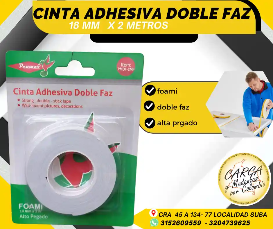 La cinta doble faz (o doble cara) es un adhesivo versátil con pegamento en ambas caras, ideal para fijar, montar y decorar sin necesidad de clavos o tornillos. Ofrece una sujeción fuerte, perfecta para espejos, cuadros, decoración, manualidades y aplicaciones industriales, adaptándose a superficies como vidrio, madera, metal y paredes Visítanos: Cr. 45a # 134 - 77 Local Esquina Contáctanos: 315 2609 559 *ASESORIA SIN COSTO POR WHATSAAP*