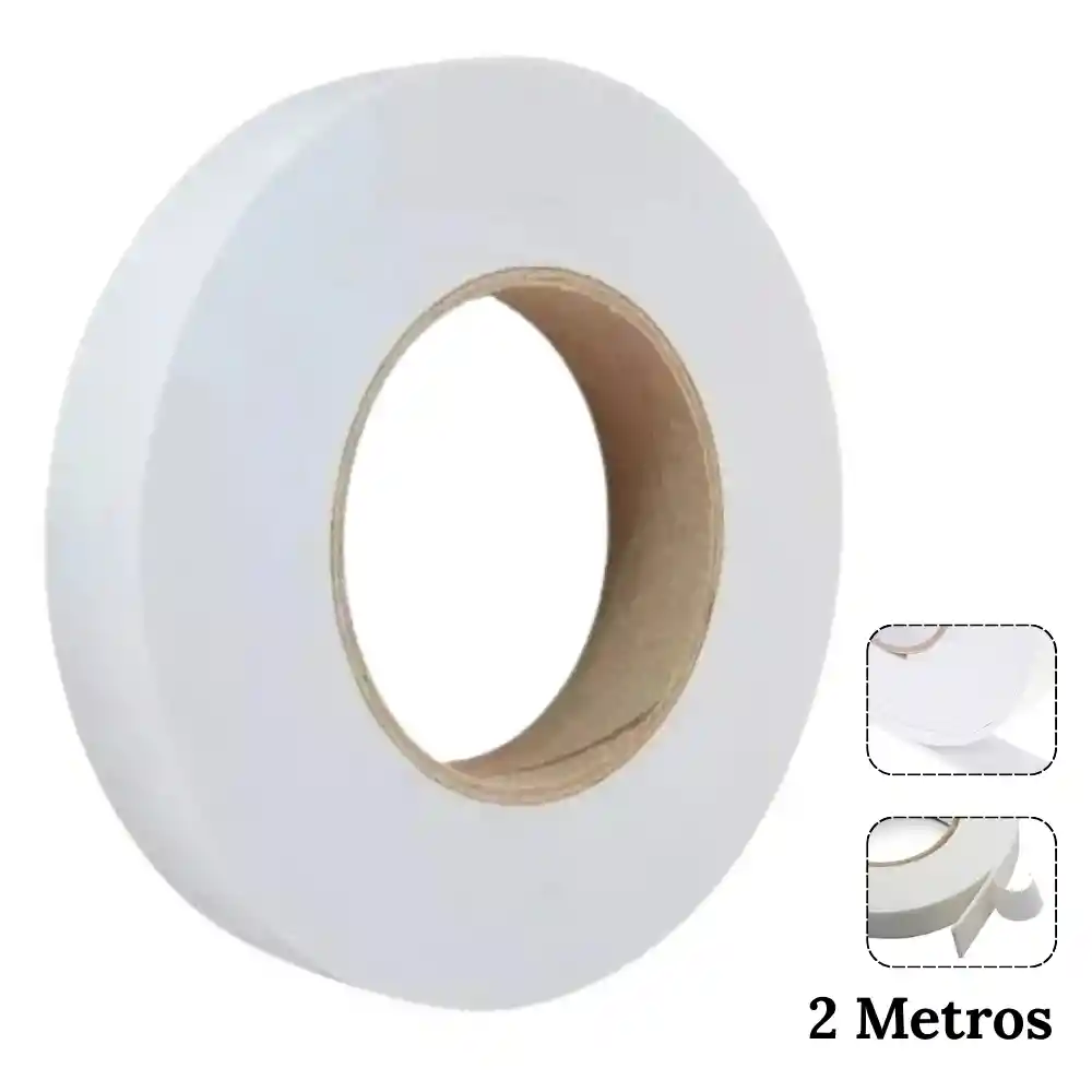 Nuestra cinta adhesiva doble faz es ideal para pegar materiales planos, acrílicos, letreros, plásticos, entre otros usos. Características: - Largo: 2 metros - Color: Blanco Puedes pasar a recoger tú pedido Entrega inmediata Envíos a todo el país. Producto garantizado, el adhesivo es de alta calidad.