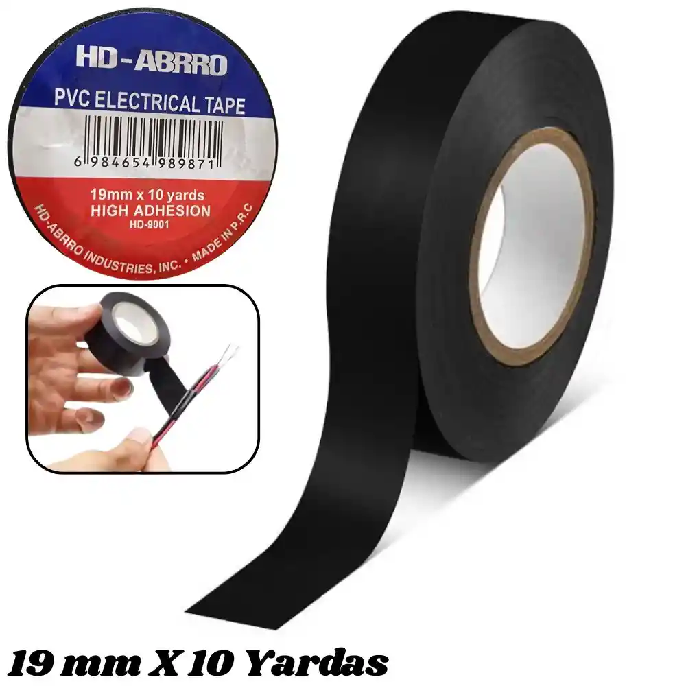Cinta Aislante Electrica En Pvc 9 Metros Negra Garantiza empalmes seguros y duraderos con la cinta aislante fabricada en PVC de alta calidad. Esta cinta es un elemento esencial en cualquier caja de herramientas, ofreciendo una excelente flexibilidad y una adhesión firme para todo tipo de reparaciones eléctricas, tanto domésticas como industriales. Características: - Alta adhesión y elasticidad: Su compuesto adhesivo de alto rendimiento asegura que la cinta se mantenga firme sobre sí misma y sobre los cables, mientras que su elasticidad permite un ajuste perfecto incluso en superficies irregulares. - Gran rendimiento (9 metros): Rollo de longitud extendida ideal para múltiples trabajos sin que se acabe a mitad de la tarea. - Resistencia Superior: El material de PVC ofrece protección contra la abrasión, la humedad, la corrosión de conductores de cobre y diversos ácidos o álcalis. - Uso Versátil: Perfecta para codificación de colores, aislamiento de cables y sujeción temporal. Especificaciones: Material: Película de PVC. Longitud: 10 Yardas / 9 Metros. Ancho: 19 mm.