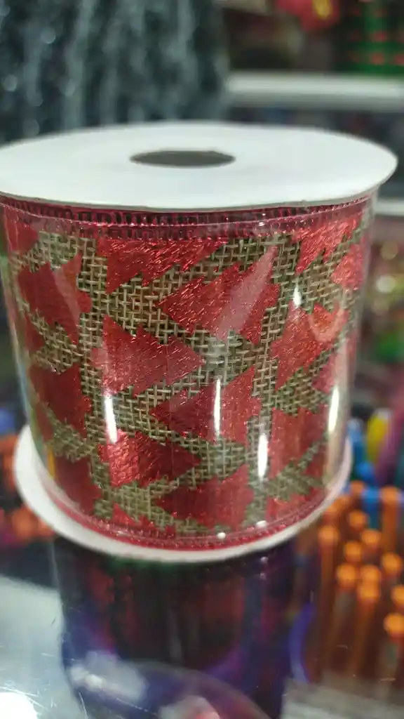 Cinta Ancha De Navidad Marrón con Orillo Rojo y Arbolitos Rojos de 6 cm