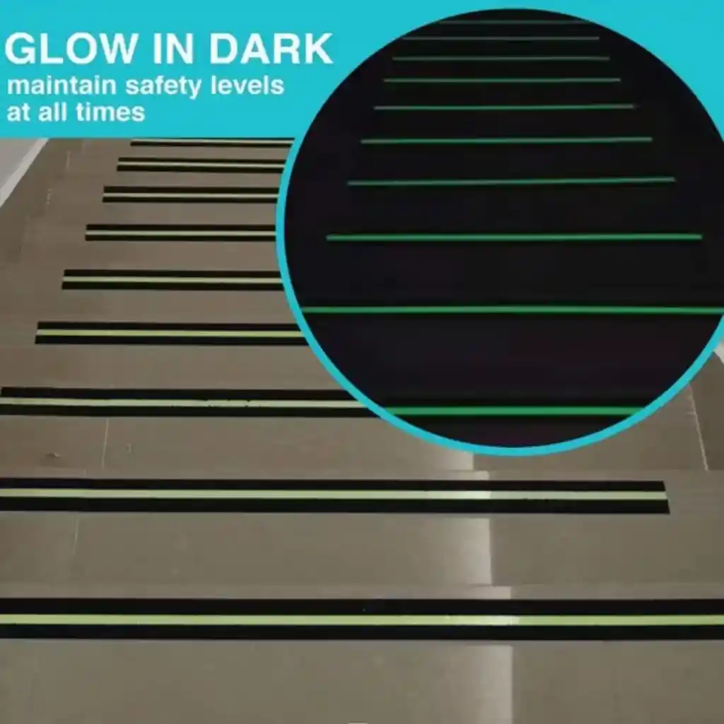 Brilla en la oscuridad y evita accidentes Mejora la seguridad en escaleras, rampas y superficies resbalosas con esta cinta resistente y visible. Superficie antideslizante de alta adherencia Efecto fotoluminiscente (brilla en la oscuridad) 🌟 Fácil instalación tipo adhesiva Resistente al desgaste y al tráfico Uso en interiores y exteriores