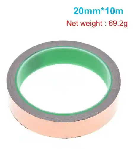 Cinta adhesiva Cinta adhesiva Conductora. Especificaciones: - Ancho: 20 mm - Material: lamina de cobre - Longitud: aprox. 10 mt / 33 pies - Espesor: aprox. Caracteristicas de 0.06 mm LA COMPRA INCLUYE: 1X CINTA COBRE ADHESIVA CONDUCTIVA ANCHO 20mm x LONGITUD 10mt