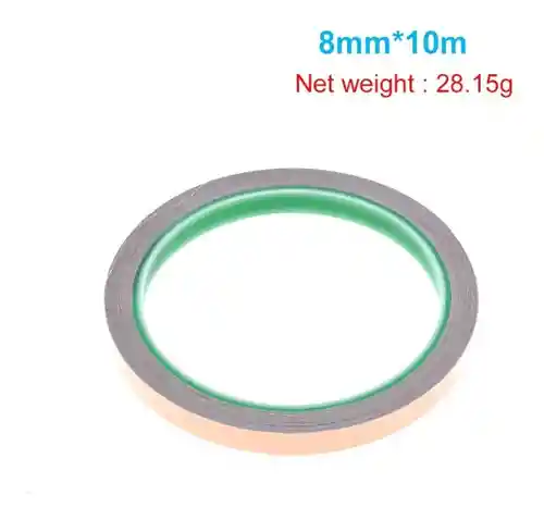 Cinta adhesiva Cinta adhesiva Conductora. - Ancho: 8mm - Material: lamina de cobre - Longitud: aprox. 10 mt / 33 pies - Espesor: aprox. Caracteristicas de 0.06 mm LA COMPRA INCLUYE: 1X CINTA COBRE ADHESIVA CONDUCTIVA ANCHO 8mm x LONGITUD 10mt