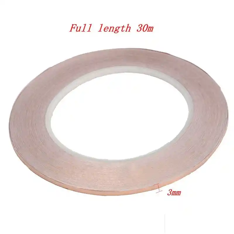 Cinta de cobre, simple cinta adhesiva conductora individual cinta de cobre autoadhesiva Para la radiacion de interferencia electromagnetica tienen mejor efecto de proteccion, Para un buen rendimiento ESD a tierra. Al mismo tiempo, el producto se utiliza para fines de soldadura. Tamaño: 3mmx30m Material: CU 99,98% Componentes coloidales: adhesivo conductor (induccion por calor del adhesivo acrilico) Adherencia: 1.5 ~ 1.3kg / 25mm Resistencia a la temperatura -10 --- 120 La intensidad de 4.5 ~ 4.8kg / mm. Alargamiento de 7-7% a 3-4% LA COMPRA INCUYE: 1x CINTA COBRE ADHESIVA 3mm 30 METROS