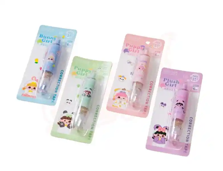 Artículo de papelería diseñado para cubrir errores en documentos de forma inmediata y limpia. Este modelo específico destaca por su diseño decorativo. Cuenta con un ancho de 6 mm y una longitud total de 6 metros.