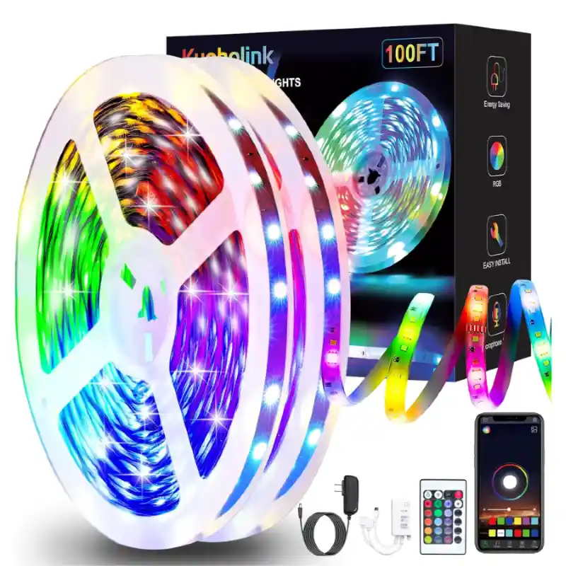 Esta cinta de luz LED de 10 metros te permite controlar el color y la intensidad a través de un control remoto o una aplicación móvil. Con la tecnología RGB, podrás crear una atmósfera personalizada en cualquier habitación. Fácil de instalar en cualquier superficie gracias a su adhesivo resistente. LUCES LED, 10 METROS KIT DE TIRA LED RGB CON IR CONTROL REMOTO, CAMBIO DE COLOR LUZ LED FLEXIBLE RGB IMPERMEABLE, CINTA REFORZADA, FUENTE DE ALIMENTACIÓN DE 12V 5A LUCES LED PARA TV DORMITORIO, NAVIDEÑA DECORACIÓN Kit todo en uno: Plug and Play este kit de tira de luz LED incluye 5050 chip 150 LED tira led . 1 controlador remoto IR y 1 adaptador de corriente 5/6A 12V (enchufe de EE. UU.), no necesita gastar más tiempo y dinero para comprar otros accesorios. Además puedes controlar desde tu telefono movil instalando la App: Apollo Lighting Iluminación regulable: Puede crear todo tipo de atmósferas de situaciones diferentes con iluminación que cambia de color. Con el control remoto, también puede seleccionar 20 colores preestablecidos y 6 colores de bricolaje para memorizar los colores que prefiera. El brillo es ajustable. ¡Solamente disfrútalo! Fácil instalación: La instalación de tiras de luces es extremadamente fácil. La cinta de respaldo autoadhesiva confiable de 3M se monta en cada tira y garantiza una adhesión duradera a cualquier superficie limpia, seca y lisa. El voltaje de trabajo es de 12 V CC, calor extremadamente bajo para una larga vida útil. Flexible y cortable: DIY varias formas Buena flexibilidad, se puede doblar y plegar a voluntad. Las tiras de luces LED que cambian de color se pueden cortar cada 3 LED a lo largo de las marcas de corte, sin dañar las tiras restantes, muy adecuadas para el bricolaje fácil. Amplia aplicación: Uso extensivo, mejor decoración puede decorar e iluminar en cualquier lugar y en cualquier ocasión, como adornos domésticos Ambiente festivo o para videos de TikTok. DESTALLES DEL PRODUCTO: Ideales para ambientar bares, restaurant, discos, locales, casas, etc. Tira de Leds SMD 5050 RGB Multicolor con efectos de luces. Ultra delgadas 3mm de alto y 8mm de ancho Ángulo de apertura 120 grados 2 Rollos de 5 metros de largo, 50 leds por metro. Adaptable a la medida que necesites. Se puede realizar un corte como mínimo de 5cm. Adhesivo 3M para colocarlo donde quieras. Permite una fácil y rápida colocación. Gran variedad de colores, con efectos de luz controlados directamente desde el control remoto. Se pueden realizar secuencias de encendido y variación de colores, logrando así una iluminación única y original. El paquete incluye: 2 x Cinta LED 5 Metros 1 x Control Remoto 1 x Adaptador de corriente 1 x Controlador GARANTÍA 30 días de garantía por defectos de fabrica. No cubre daños ocasionados por el comprador.