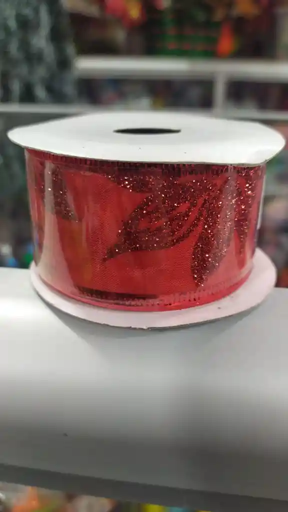 Cinta De Navidad Roja Con Orillo Rojo y Flores Rojas De 4cm, 2mt con 74 cm