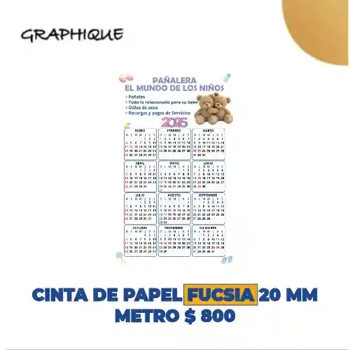 Cinta de papel fucsia 20 mm metro