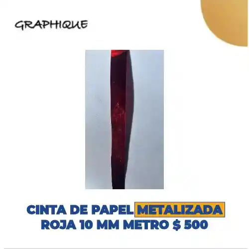 Cinta de papel metalizada roja 10 mm metro