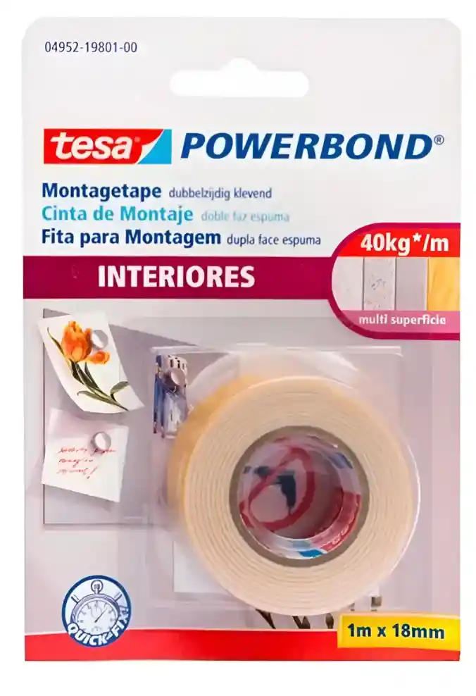 - Cinta Doble Faz para Interiores es ideal para fijar objetos pequeños de varias caras como azulejos, tablones de anuncios, ganchos, relojes y cuadros en superficies de interior. -Facil uso - Tiene una gran variedad de aplicaciones en el hogar, especialmente para fijación de objetos pequeños en interiores -Practico para uso industrial - Una sola tira de 10 cm soporta hasta 40 kg en superficies fuertes para asegurar una buena adherencia y seguridad en su hogar.