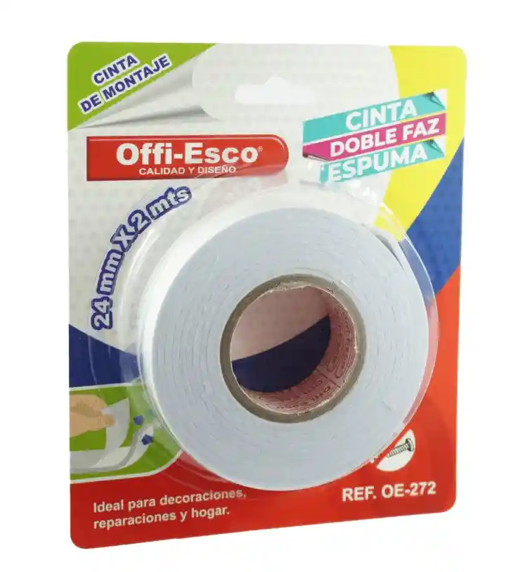 Cinta Doble Faz Espumada 24 mm x 2 mt Offi-Esco Cinta de montaje