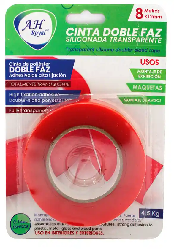 CINTA DOBLE FAZ ROJA TRANSPARENTE, 8 YARDAS 0.16MM - AH ROYAL