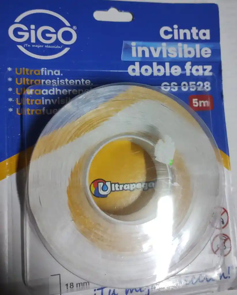 cinta doble faz transparente , por 5 metros , ultraresiste, ultra adherencia
