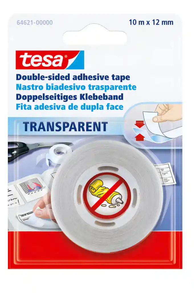 La cinta adhesiva de doble cara es transparente y se puede manipular fácilmente. Gracias a la tecnología adhesiva superior de tesa ®, tiene un alto poder adhesivo y es útil para pegar muchos materiales diferentes. Se adhiere fácilmente a la parte posterior de los objetos y, por lo tanto, es invisible para el observador. La cinta adhesiva de doble cara es ideal para montar objetos decorativos, planos, carteles o dibujos, y también es una ayuda muy utilizada en trabajos manuales. Gracias a su gran poder adhesivo, la cinta adhesiva es una alternativa real y protectora de la superficie a los taladros o martillos a la hora de fijar objetos ligeros.