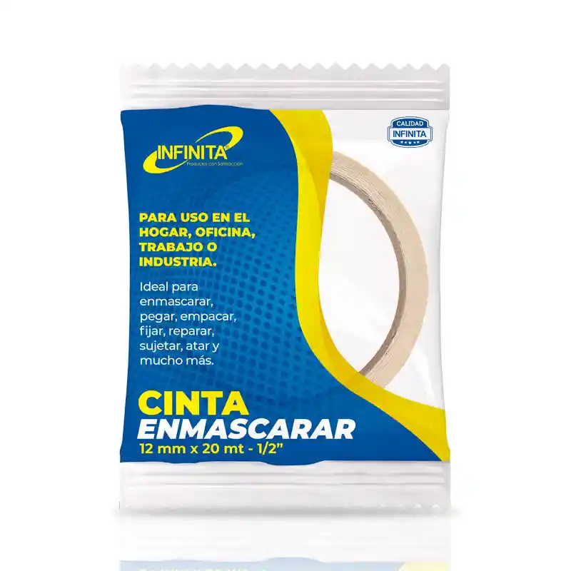Características: Cinta de enmascarar de 1/2 pulgada. Fácil desprendimiento. Autoadhesiva. Ideal para enmascarar, pegar, empacar, fijar, reparar, sujetar y atar.