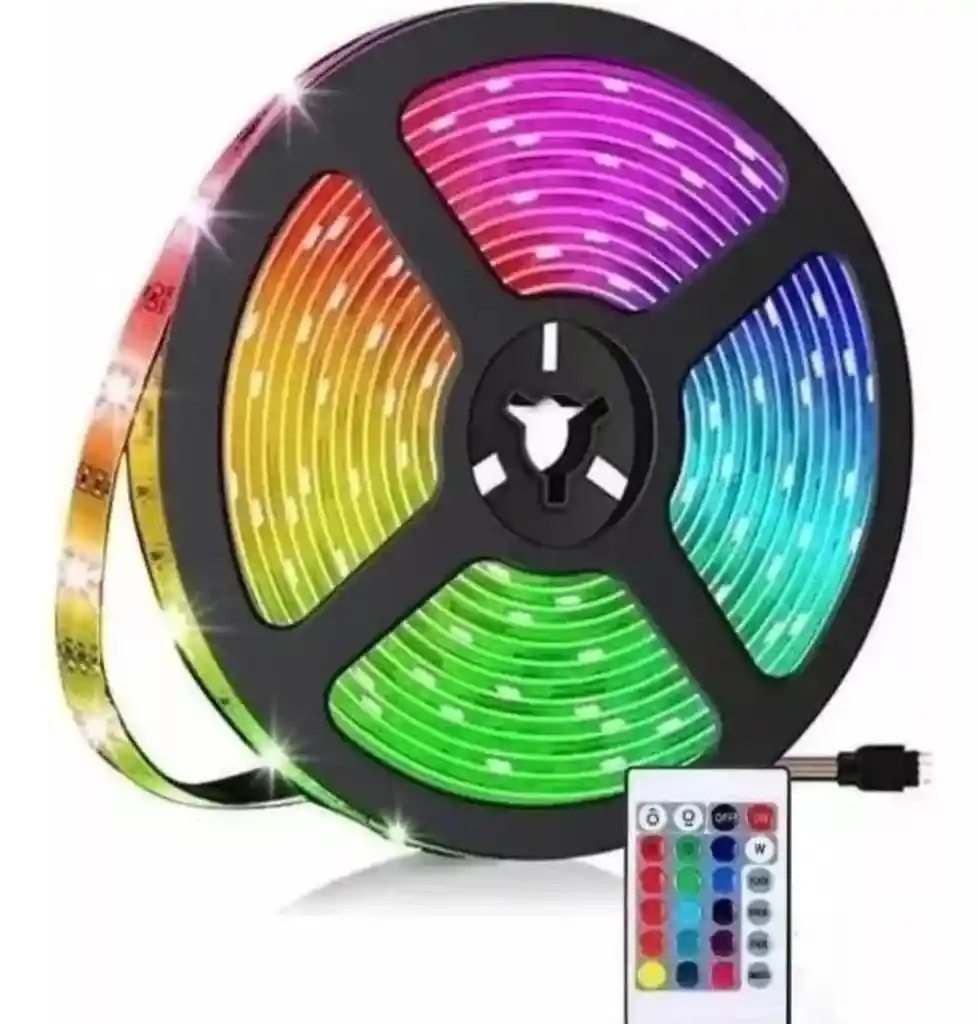 Descripción decora tus espacio fácilmente Cinta Led 5050 5 Metros + Controlador + Control Remoto 24 Botones + Adaptador De Voltaje 110v. Especificaciones Técnicas: Ángulo: 180 Grados. Voltaje De La Cinta 12v Conexión A 110v Con El Adaptador Incluido. Protección Ip65 Siliconada Resistente Al Agua. Adhesivo 3m. 60 Leds Por Metro. Tamaño Del Led 5050. Vida Útil: Más De 20,000 Horas. se instala facilmente, tiene pegante