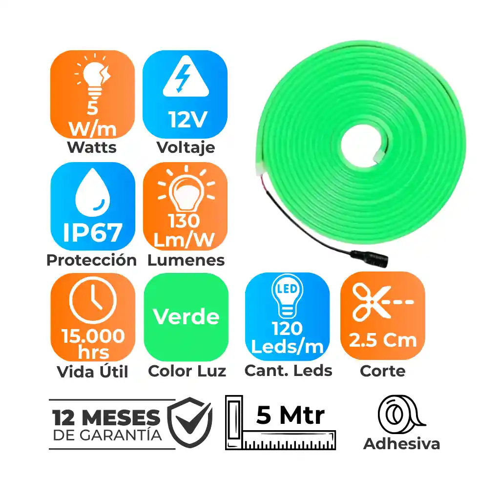 CINTA LED SMD NEON 5W/M 12V VERDE C/CONEC IP20 RLL 5MTS