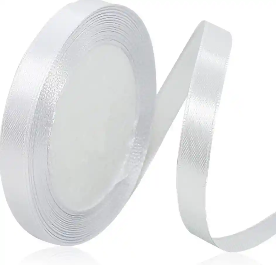 Cinta Liston De Tela Lisa Satinada Color Blanco 13 Mm X2 Metros