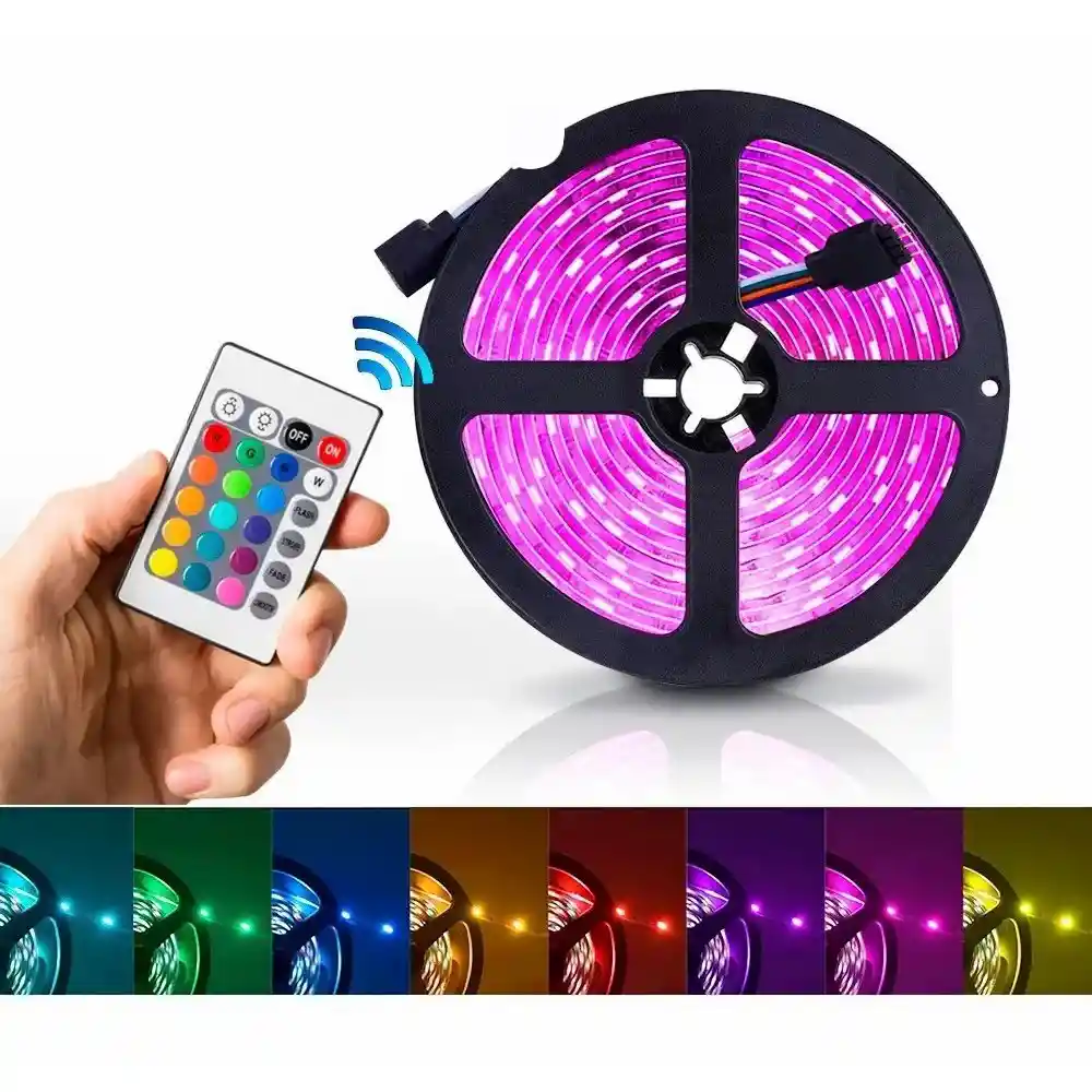 <<<<< CINTA LUCES LED RGB MULTICOLOR 5 MTS + CONTROL REMOTO + FUENTE DE PODER >>>>> <<<<< DESCRIPCIÓN: >>>>> La cinta de luces LED es ideal para decorar y ambientar cualquier espacio, brinda una iluminación uniforme y genera luz de calidad gracias a que tiene tonos cálidos y fríos. Este rollo viene por 5 metros y brinda luz monocromática o multicolor. ********** EL BARATILLO TE TRAE ESTE SUPER DESCUENTO, APROVECHA YA UNIDADES LIMITADAS!!! ********** <<<<< CARACTERÍSTICAS DEL PRODUCTO: >>>>> Cinta led en silicona Rollo por 5 metros RGB multicolor Uso: 15.000 horas Se recomienda no usar más de 4 hora seguidas. Para uso interior <<<<< DESTACADO DEL PRODUCTO: >>>>> • 16 colores • Gama de Amarillos • Gama de Verdes • Gama de Azules • Gama de Rojos • Se puede atenuar o dimerizar • Paso de colores intermitente rápido o lento <<<<< CONTENIDO DE LA CAJA: >>>>> • 1 rollo Cinta luces Led 5050 x 5 metros • 1 Control remoto • 1 Fuente de poder para conectar a 110/220v
