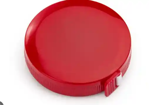 instrumento de medición portátil con un diseño compacto, a menudo retráctil y con un botón central para recoger la cinta