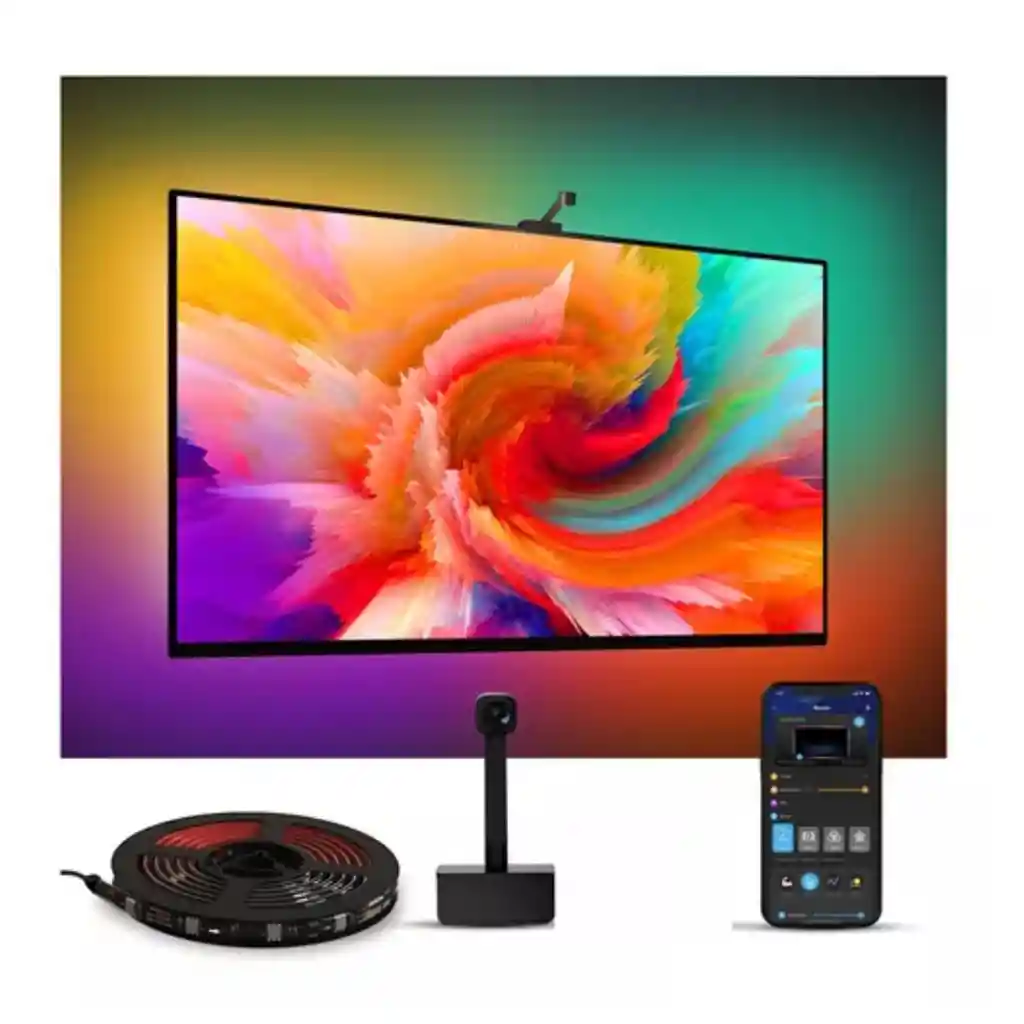 Somos TELEPRODUCTOS BOGOTA Productos 100% garantizados, años de experiencia en ventas online.! -Cuando realices la compra recibirás toda la información de contacto y datos para que puedas hacer seguimiento a tu producto.! ----------------------------------------------------------------------------------------------------------------------- Elección Inteligente del Color: luces LED inteligentes con la cámara 1080P, se detectan los colores de la pantalla del televisor y se aplican automáticamente a la tira de luces inteligentes. Esto permite que su sala de juegos o sala de cine muestre efectos de color e iluminación en tiempo real. (No Soporta Las Pantallas Curvas). Voz Control Inteligente: Gestiona tus tira de luces LED inteligentes con simples comandos de voz, a través de Alexa y Google Assistant, Disfruta de acceso a más colores y funciones como el modo Temporizador, Vídeo, Bricolaje y Música, que lo ayudarán a crear la atmósfera de juego y de visualización de películas que necesita. Tecnología RGBIC: tira de luces LED inteligentes le permite personalizar cada segmento de luces de la tira y mostrar varios colores simultáneamente. Instalar Fácil: luces LED con los clips y los adhesivos, la tira de luces compuesta por 4 piezas puede instalarse firmemente en cualquier televisor de 55 a 65 pulgadas. (Aviso: Sólo presione las pegatinas de espuma ligeramente para instalar). Garantía del vendedor: 30 días