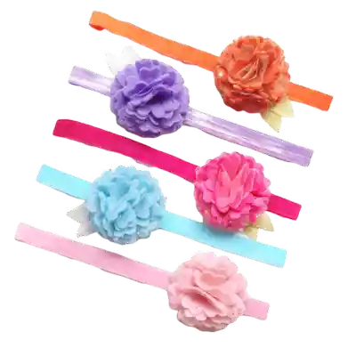 Set de 5 Cintillos Elasticos Graduables Con Flor de 7 cm en Hecha en Paño Lency y Tul