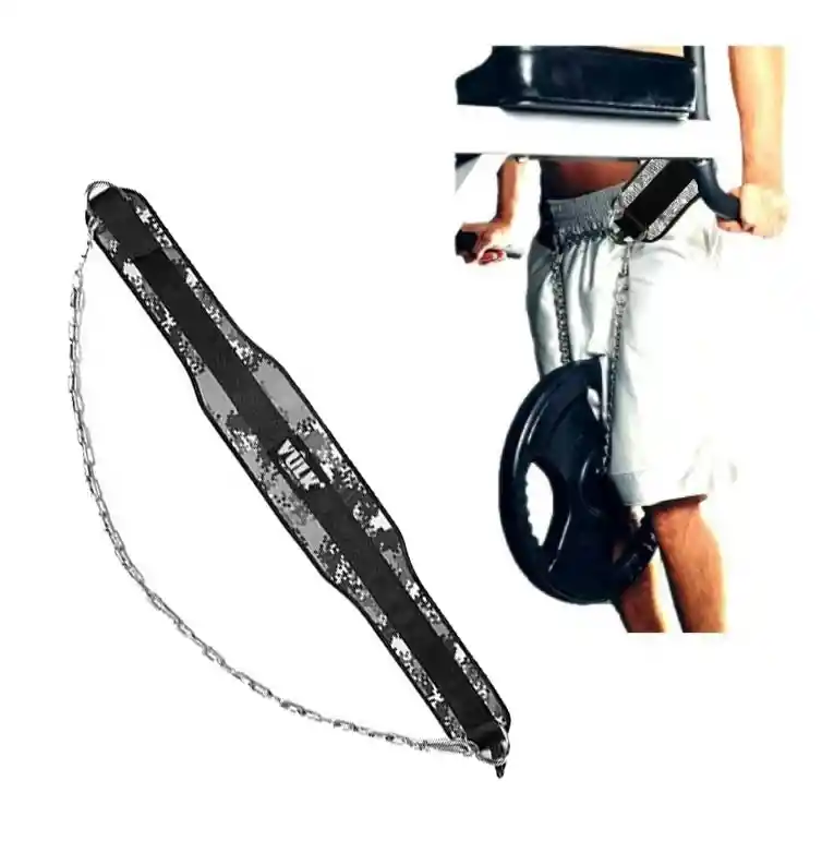Color: Gris Pixelado – Triple costura. – Ajuste de hebillas de acero y cadena. – Protege el músculo de la cintura. – Ayuda a ejercer toda su fuerza. – Ancho: 15CM. – Largo: 90CM. – Soporta 80kg MATERIAL: *EVA Neopreno *Lona *Forro jersylon hipoalergenico *Cadena 90cm *Mosquetón # 9 ¿QUÉ BENEFICIOS TIENEN LAS DOMINADAS LASTRADAS? Las dominadas son un ejercicio básico para fortalecer y tonificar la musculatura de la espalda, así que si quieres ganar fuerza y conseguir una silueta más esbelta y definida, éstas no pueden faltar en tu rutina de entrenamiento. Las dominadas lastradas trabajan los mismos músculos que las dominadas tradicionales. Sin embargo, al añadir un lastre estamos aumentando la intensidad del entrenamiento e incidiremos también en los pectorales y en los brazos, además de en la espalda. Recuerda que este tipo de ejercicios no deben realizarse con demasiada frecuencia, ya que su ejecución genera bastante tensión en los brazos y en los hombros. Lo ideal es que tras su realización,esperes un tiempo para dejar que el cuerpo se recupere del esfuerzo.