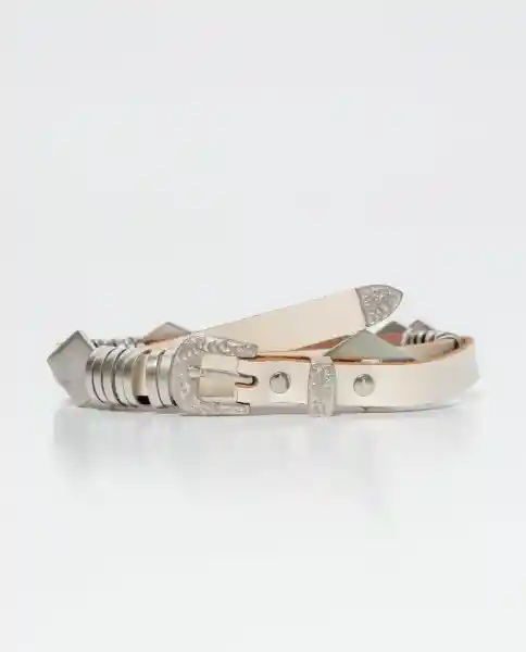 Delgado Para Mujer Elaborado en 100% Cuero Vacuno. Diseño Con Hebilla Pasador y Puntera Con Detalles Inspirados en el Estilo Western en Acabado Níquel Negro Claro. Las Piezas Metálicas Decorativas le Aportan un Carácter Distintivo Que Resalta Incluso en Los Looks Más Simples. Ideal Para Llevar Con Jeans Pantalones Rectos o Vestidos Fluidos Este Cinturón Aporta un Toque Sutil Pero Poderoso Tanto en el Día Como en la Noche. Ancho: 1.5 cm. Ean- 212 g001Cru110103 Plu- 1111133148305.