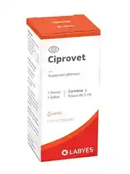 Contiene Ciprofloxacina en una base de Condroitín Sulfato al 20%. La Ciprofloxacina pertenece al grupo de las fluoroquinolonas y se destaca por su acción sobre numerosos grupos bacterianos. El Condroitín Sulfato estimula y organiza la reparación corneal, mejora la cicatrización y conserva en la superficie ocular su humectación natural y transparencia. La mayor frecuencia de úlceras y patologías oculares en el segmento anterior, justifican la elección de éste colirio. Ciprovet logra excelente concentración y máxima permanencia antibiótica a dicho nivel, promueve la rápida cicatrización y evita complicaciones.