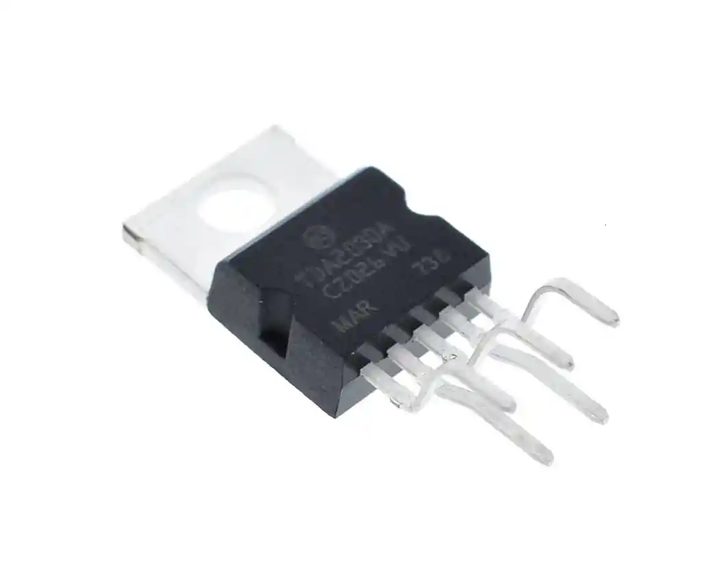 El TDA2030 es un circuito integrado monolítico, diseñado para usarse como un amplificador de clase AB de baja frecuencia. Por lo general, proporciona una potencia de salida de 14 W (d = 0,5%) a 14 V / 4 ohmios. A ± 14 V o 28 V, la salida garantizada la potencia es de 12 W en una carga de 4 ohmios y de 8 W en una de 8 ohmios (DIN45500). El TDA2030 proporciona una alta corriente de salida y tiene una distorsión armónica y cruzada muy baja. Además, el dispositivo incorpora un original (y patentado) sistema de protección contra cortocircuitos que comprende una disposición para limitar automáticamente la potencia disipada para mantener el punto de funcionamiento de los transistores de salida dentro su rango de funcionamiento seguro. También se incluye un sistema de apagado térmico convencional. Características: Tensión de alimentación de amplio rango, hasta 36 V Fuente de alimentación simple o dividida Protección contra cortocircuitos a tierra Apagado térmico LA COMPRA INCLUYE: 1 x CIRCUITO INTEGRADO TDA2030
