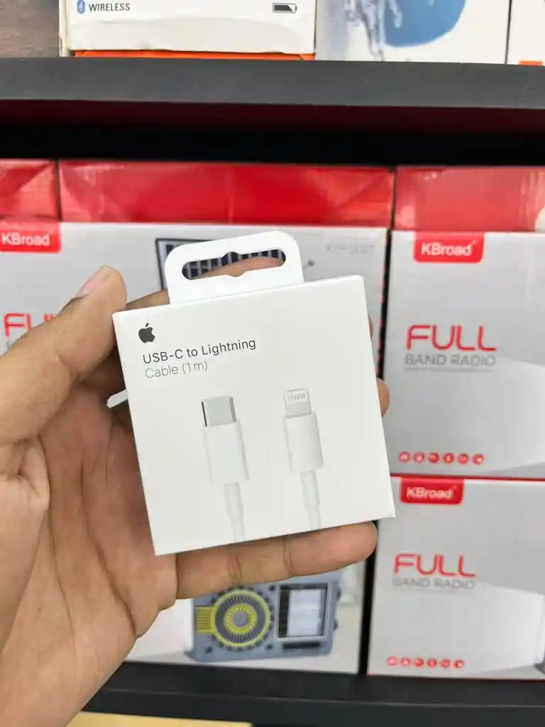 Cable original Apple USB-C a Lightning (1 metro), ideal para cargar y sincronizar iPhone de forma rápida y segura. Compatible con carga rápida al usar adaptadores USB-C, permite transferencia de datos y conexión estable con dispositivos Apple. Diseño resistente y de alta calidad. Ideal para Iphones 11, 12, 13 y 14