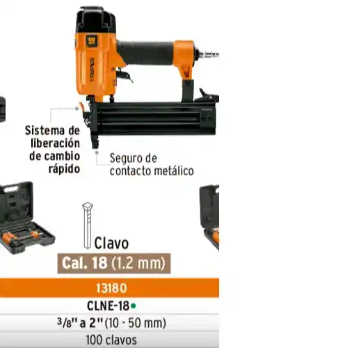 cuerpo de aluminio, presion maxima 110psi, clavos desde 3/8" hasta 2"