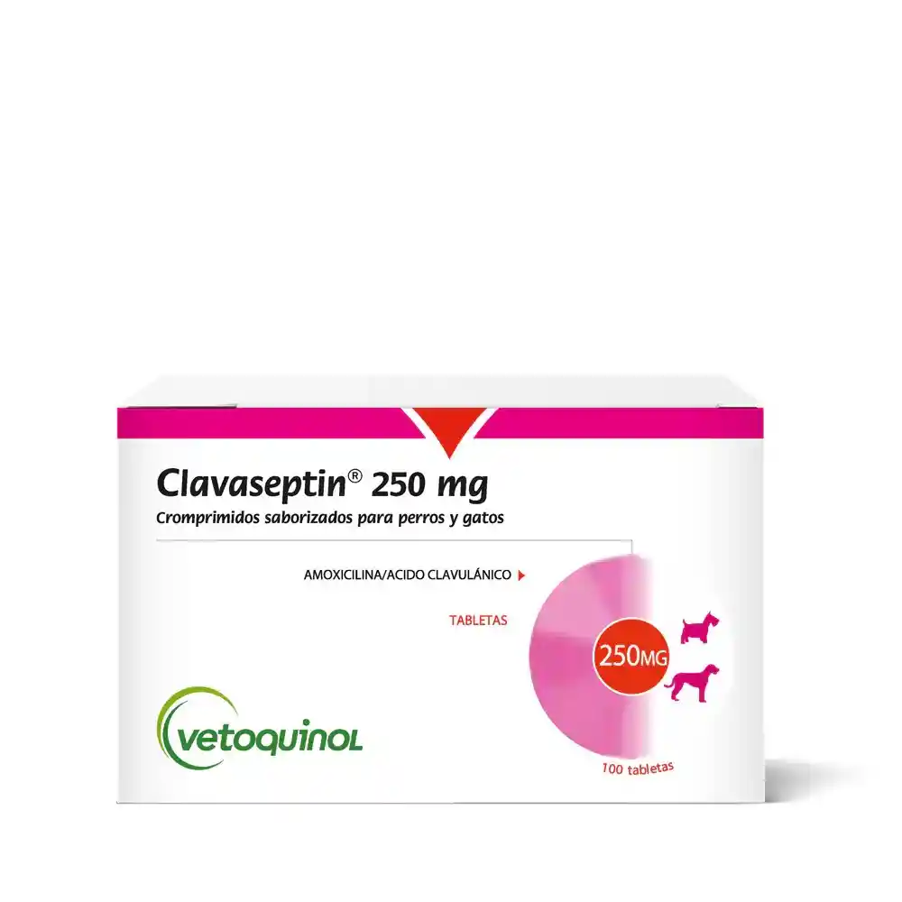 El Clavaseptin 250 mg es un antibiótico veterinario de amplio espectro, compuesto por una combinación de amoxicilina y ácido clavulánico, diseñado específicamente para perros y gatos.