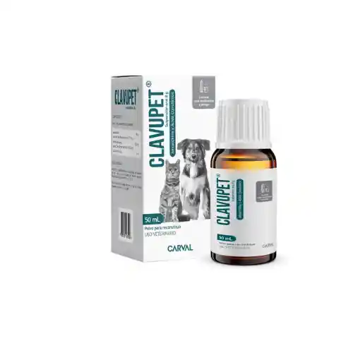 En PERRO y GATOS indicado para el tratamiento de infecciones de piel y tejidos blandos causadas por bacterias sensibles: Staphylococcus ssp., Streptococcus spp., y E. coli En GATOS para el tratamiento de infecciones del tracto urinario causadas por cepas de E. coli sensibles. Dosis y modo de empleo: Administrar por vía oral. Medir con la copa dosificadora 45 mL de agua potable fría, previamente hervida, y adicionar en el envase original. Tapar y agitar vigorosamente antes de usar. Se debe obtener un volumen final de 50 mL de suspensión reconstituida (verificar volumen en el nivel marcado en la etiqueta). Antes de suministrar el producto, asegúrese de agitar muy bien la mezcla. Usar jeringa vía oral para suministrar la dosis en perros y gatos. Para información detallada del producto remitirse al inserto, en el apartado modo de empleo. Dosis farmacológica: Amoxicilina trihidrato: 10 mg/kg de peso y Ácido clavulánico: 2.5 mg/kg de peso.
