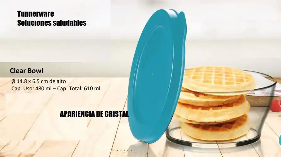 Refrigera, conserva, transporta y sirve; mantén la frescura de tus alimentos con el Clear Bowl. Cuenta con una pestaña lateral que ayuda a abrir o cerrar con mayor facilidad, su sello es hermético conserva alimentos crudos o cocinados, por más tiempo, pueden ser usados para líquidos sin derramarse al transportar, también para servir con elegancia, por ello este producto se adapta a las necesidades cotidianas de tu familia así como en ocasiones especiales. Su aparariencia de color es para visualizar el contenido. Producto plástico y Policarbonato libre de BPA (Bisfenol A), Dile No a los plásticos de un solo uso. Medidas: Cap total 610ml, Cap uso 480ml Ø 14.8 x 6.5 cm de alto. Recomendaciones: lavar con agua fria y espuma no abrasiva.