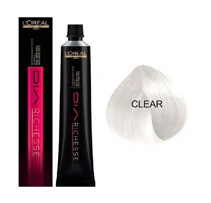 L'Oreal Dia Richesse Clear 50ml DIA Richesse ilumina el color natural del cabello a través de su proceso de coloración tono sobre tono y sin amoníaco, para obtener reflejos ricos y profundos y una sensación de suavidad excepcional. Ideal para difuminar las primeras canas dejándola con un color de aspecto natural. El corto tiempo de desarrollo también lo hace perfecto para servicios rápidos de recarga de tintes para el cabello para personas con vidas ocupadas. Modo de uso Se mezcla L’Oreal DIA Richesse con L'Oréal DIA Richesse Activateur () (6 vol, 9 vol y 15 vol). * Use el 6 Vol en colores base brillantes. * Utilizar el 9 Vol a la misma altura de color y con cobertura de canas <30%. * Usa el 15 Vol para un carácter intenso y una cobertura de canas del 30% - 70%. Proporción de mezcla: 1:1,5 Tiempo de trabajo: 20 minutos