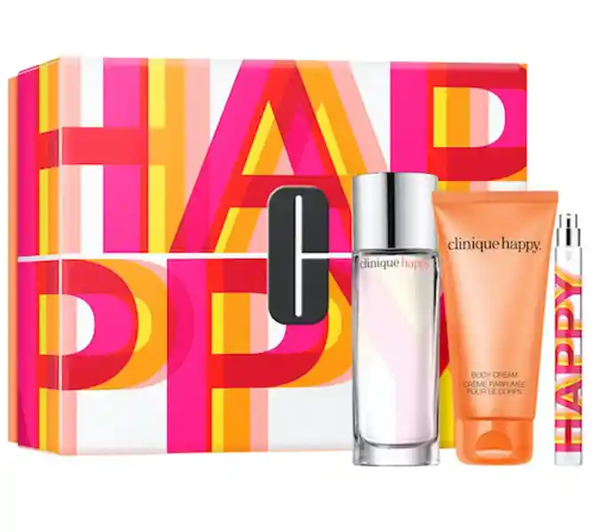 Clinique Happy, la fragancia favorita, combina notas frescas y vibrantes de pomelo rojo rubí y bergamota con notas suaves y sensuales como la flor nupcial hawaiana y la mimosa de primavera. Happy Body Cream de Clinique es un tratamiento rico y calmante para la piel que deja la piel deliciosamente suave y ligeramente perfumada. Un spray para bolso fácil de viajar te permite llevar la felicidad a cualquier parte.